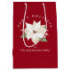 Modern Elegant White Poinsettia Red Happy Holidays Medium Gift Bag