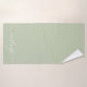 A stylish trendy sage green towel set with white script name with lovely swashes on the letters. Personalize with your name. For a modern urban vibe.