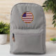 This design of the American flag presents some unique traits. The colors are vivid, with a striking deep blue for the stars' background and a rich red for the stripes. The colors are vivid, with a striking deep blue for the stars' background and a rich red for the stripes. The stars and stripes appear to be embossed or raised, creating a 3D effect. The colors have a gradient effect, adding depth and dimension to the design. The overall style gives a modern and stylized interpretation of the traditional American flag.