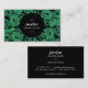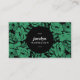 A traditional floral pattern is made modern with an emerald green and black color scheme. The centered black circle highlights your name or business name on this modern business card template. © 1201AM CREATIVE