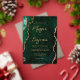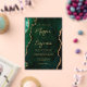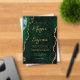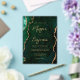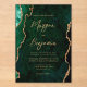 This elegant acrylic wedding invitation features a background image of emerald green watercolor agate trimmed with faux gold glitter. The customizable text combines gold-colored modern handwriting, copperplate and italic fonts.