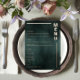 Elevate Your Wedding Reception: Modern Emerald Green Black Elegant Wedding Foil Menus. Transform your dining experience with our meticulously designed menus, seamlessly blending emerald green and black tones enriched by elegant foil accents. Set the tone for a sophisticated wedding reception with these menus that harmoniously balance contemporary elegance and timeless charm. Customize them to match your unique theme. Create a memorable ambiance that resonates with your distinctive style. Shop now and delight your guests with an unforgettable dining presentation.