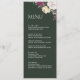 Introducing the Modern Peony Wedding Collection's Wedding Menu Card, a perfect addition to your wedding table decor. This elegant card features an emerald green background with burgundy, white, and cream-colored roses, adding a touch of sophistication to your wedding.