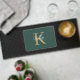 Modern Emerald Green Gold Monogram Script Bar Mat