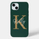 Modern Emerald Green Gold Monogram Script Case-Mate iPhone Case