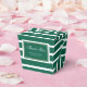 Modern custom emerald green wedding favor boxes featuring white stripes on a emerald green background. Easily personalize these emerald green wedding favor boxes with your wedding details. Our modern emerald green wedding favor boxes are perfect for your elegant emerald green wedding party. These personalized thank you favor boxes can be customized to other occasions, such as bridal, or baby showers.
