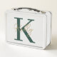 Modern Emerald Green Monogram Script Metal Lunch Box