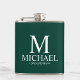 featuring personalized monogram, groomsman's name and title in white classic serif font style on emerald green background.