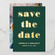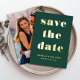 Personalized Modern Emerald Green Photo Save The Date Gold Foil Invitation.