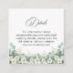 Make sharing wedding details effortless with our Modern Emerald Greenery QR Code Wedding Details Card. Featuring a stunning watercolor design of eucalyptus leaves and delicate jasmine flowers, this elegant card seamlessly blends nature-inspired beauty with modern convenience. Simply add your personalized QR code to direct guests to your wedding website, RSVP link, or event details—keeping everything organized and easily accessible. Perfect for a greenery or watercolor wedding theme!