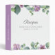 Modern Eucalyptus Botanical Bridal Shower Recipes 3 Ring Binder