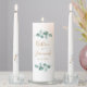 Modern Eucalyptus Branch Gold Script Wedding Unity Candle Set