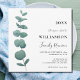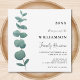 It features a simple watercolor eucalyptus sprig with elegant typography.