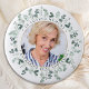 Honor your loved one with a custom photo memorial funeral button. This funeral button features elegant eucalyptus greenery wreath, with your custom photo.