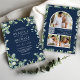 Modern Eucalyptus Photo QR Code Navy Blue Wedding Invitation