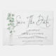 Modern Eucalyptus Script Keepsake Save The Date. A handy keepsake to invite your guests to save your date. A minimalist botanical design with Save The Date in a modern set script. The rest of the text you can easily personalise. Text and background colors can be changed if you wish via the edit further option.