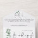 Modern Eucalyptus Script Wedding. Simply seal and send - no envelope is required. Botanical elegance in soft green watercolor to send your guests all the information they require for your wedding day, with this invitation, details and convenient reply card with your return address details all rolled into one. Please order each invitation separately if you wish to utilise this option of personalising each invitation with your recipients' name and address to save handwriting them. TIP: complete the rest of the invitation details first, then put your first recipients name and address details here. Once you have added your first invite to your cart, you can click on the image of it in your cart, which will take you back to the product then simply add your next recipients name and address. It won't override the previous ones already in your cart. PLEASE NOTE you can delete this text if you prefer to order in bulk and add your recipient name and address details upon receipt. If you need any help please message me.