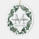 Modern Eucalyptus Wreath Monogram Wedding Keepsake Ceramic Ornament