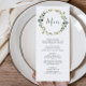 Modern Eucalyptus Wreath Watercolor Wedding Menu
