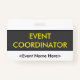 This sleek badge design features the message "EVENT COORDINATOR". A badge like this could perhaps be used to show that the wearer is working for or at an event. [~Z0000307]
