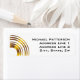 A professional look for your correspondence, this return address label features concentric golden circles over a plain white background. Personalize with your information by replacing the sample text in the design template.