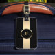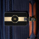 Make a professional statement with this sleek luggage tag featuring a bold vertical stripe and custom monogram. Choose from multiple background colors to perfectly match your personal travel style.