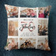 A beautiful, modern gift for a 70th birthday gift: A trendy Instagram photo collage pillow with your personal message and name around a minimalist chic FABULOUS 70 rose gold script calligraphy design for that special keepsake packed with years of memories. This is the white and rose gold version.