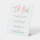 LINA • This sweet rose gold and white wedding bar menu tabletop sign associates the elegant glamour of the "faux" rose gold foil texture with the casualness of the copy text and handwritten fonts. The collection coordinates well with autumn/fall wedding colors. Also, with the little fairy-tale touch in a modern style, this collection is an amazing choice for princess weddings and other Cinderella-themed events.