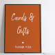 Casual trendy typography wedding cards & gifts sign in simple monochromatic rust orange terracotta and white hand lettering. ++++++++++++++++++ You can change colors of text and background after selecting CUSTOMIZE further option. ++++++++++ Suitable for modern style informal wedding receptions.