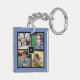 Modern blue gray family custom photo collage and monogram with Family name, keychain..