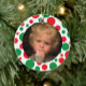 This cute and colorful ornament is perfect for the holidays. A round photo on the front with a name and year on the back make this the perfect gift for grandparents. Get a photo ornament each year to chronicle the growth of your child or grandchild. Modern design features green and red dots in a variety of sizes.