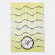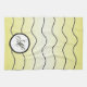 Soft butter yellow tones with sleek, black wavy lines accentuate the modern black and white centerpiece with your personalized family initial. A subtle, matching yellow drop shadow compliments the calligraphy initial in black.