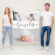 To add an extra touch of elegance, the blanket features a modern script font for your family's last name, complete with long tail swashes that exude sophistication. This stylish design element adds a timeless appeal to the blanket, making it a truly special and personalized piece.