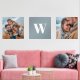 Cherish family memories with this print set including two photographs and your family monogram on gray-blue background.