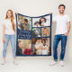 Modern Family Name 6 Photo Collage Blue Fleece Blanket