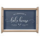 Modern, chic brush script reading LAKE HOUSE under your family name in a trendy typography driven design. Great custom lake house decor for your home away from home. Both romantic and stylish, our navy blue serving tray features a sweet canoe illustration between your location and the year established.