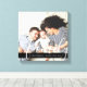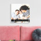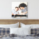 Affordable custom printed wrapped canvas wall art personalized with your photos and text. This modern minimalist design features large family script text overlaid on your family photo with your name monogram and family established date below. Use the design tools to edit the text fonts and colors and add more photos to create a one of a kind personalized family photo sign. Custom canvas prints make great gifts for family and friends.