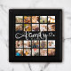 Modern custom photo collage tray with space for 20 photos surrounding a trendy swirly script reading FAMILY and your custom name below.