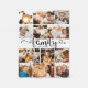 Cute, modern custom family photo collage blanket with hand lettered script design with heart flourishes, making this a heartfelt keepsake gift for a beloved mom, father, grandparent or any other other family member. Personalize with 12 favorite pictures and your personal names.