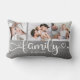 Modern Family Script Rustic Linen 3 Photo Collage Lumbar Pillow