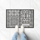 "Modern Farmhouse Black and White Family Name with Welcome Watercolor Doormat." Elegant vintage style tile patterns were hand painted in acrylic watercolor on canvas and have a lightly distress texture that makes it perfect for farmhouse style all the way to an urban modern rustic decor. Your family name or message is easily customized. Art by internationally licensed artist and designer, Audrey Jeanne Roberts, copyright.