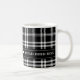 Personalize this stylish mug with your family name and date established or other custom text. Background pattern features a classic black and white tartan plaid pattern. A great accent for the fall and Christmas holidays.