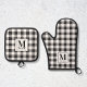 Modern Farmhouse Black Buffalo Check Monogram Oven Mitt & Pot Holder Set