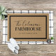 Modern farmhouse doormat personalized with your family name and established date. Faux burlap canvas texture background. Click the Customize It button to add your own text and create your own unique one of a kind design!