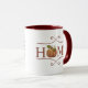 Enjoy your favorite fall beverages with this stylish coffee mug that features the word HOME in a red decorative script with a pumpkin accent for the 'O'. The rustic red and orange colors give this modern farmhouse mug a cozy look for those chilly autumn months.