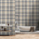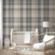 Modern Farmhouse Plaid in Cream and Slate Blue Wallpaper
