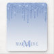 Modern Elegant Fashionable and Trendy Dusty Blue Glitter Mouse Pad personalized with your Monogram Initial and Name. Dripping Glitter with sparkles.