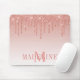 Modern Elegant Fashionable and Trendy Rose Gold Glitter Mouse Pad personalized with your Monogram Initial and Name. Dripping Glitter with sparkles.