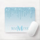 Modern Elegant Fashionable and Trendy Light Blue Glitter Mouse Pad personalized with your Monogram Initial and Name. Dripping Glitter with sparkles.