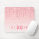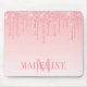 Modern Elegant Fashionable and Trendy Pink Blush Glitter Mouse Pad personalized with your Monogram Initial and Name. Dripping Glitter with sparkles.
